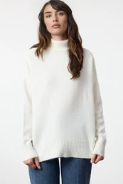 TrendyolEcru Soft Texture Turtleneck Wide Pattern Knitwear Sweater
