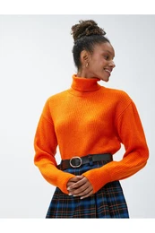 Debel pleten pulover, Oranžna, happiness İstanbul, Debela pletenina, Slouchy, Visok vratnik, Prosti čas, Jahanje, Drsanje, Dolga, Jesen, Rokav z rokavi iz pletenine, Potovanje, Gost, Študenti, Za 40 in več, Za 50 in več, Za 60 in več, Za 30 in več
