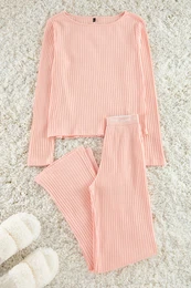 TrendyolPowder Slogan Elastic Detailed Ribbed Knitted Pajama Set