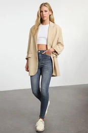 TrendyolGrey High Waist Skinny Jeans