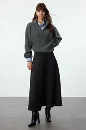 TrendyolGray Premium Yarn/Special Yarn Midi Knit Skirt